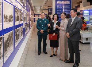 (Chuyên đề “Dấu chân Hồ Chí Minh trên quê hương Cách mạng tháng Mười” trưng bày 260 tư liệu, hình ảnh và hiện vật tiêu biểu về hành trình Nguyễn Ái Quốc đến Nga. Ảnh: Phan Phương – TTXVN)